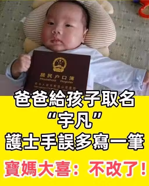 爸爸給孩子取名「宇凡」,護士手誤多寫一筆,寶媽大喜:不改了~