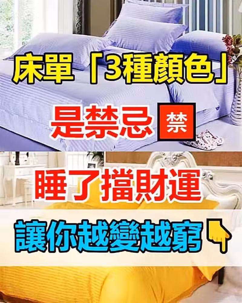 床單「3種顏色」是禁忌!睡了擋財運,讓你越變越窮! 大家在臥室千萬別鋪3種顏色床單, 一個人的個性,很容易在很多的小事情中體現出來, 當然也可以在臥室里體現出來, 畢竟在臥室里,色彩除了牆的顏色就是床的顏色了。