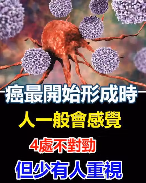 癌最開始形成時,人一般會感覺4處不對勁,但少有人重視