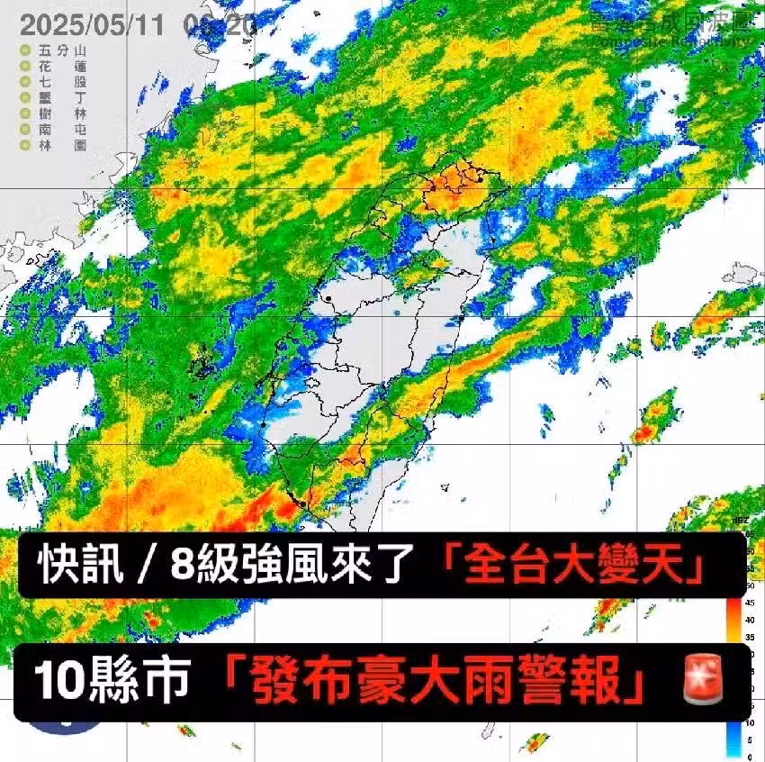 根據《ETtoday新聞雲》報導,中央氣象署發布重大天氣警報,全台各地今(11)日受鋒面影響,天氣相當不穩定。