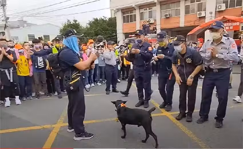 白沙屯媽祖警局前狂剎車!所長急忙跪地「警犬衝出祈福」網融化