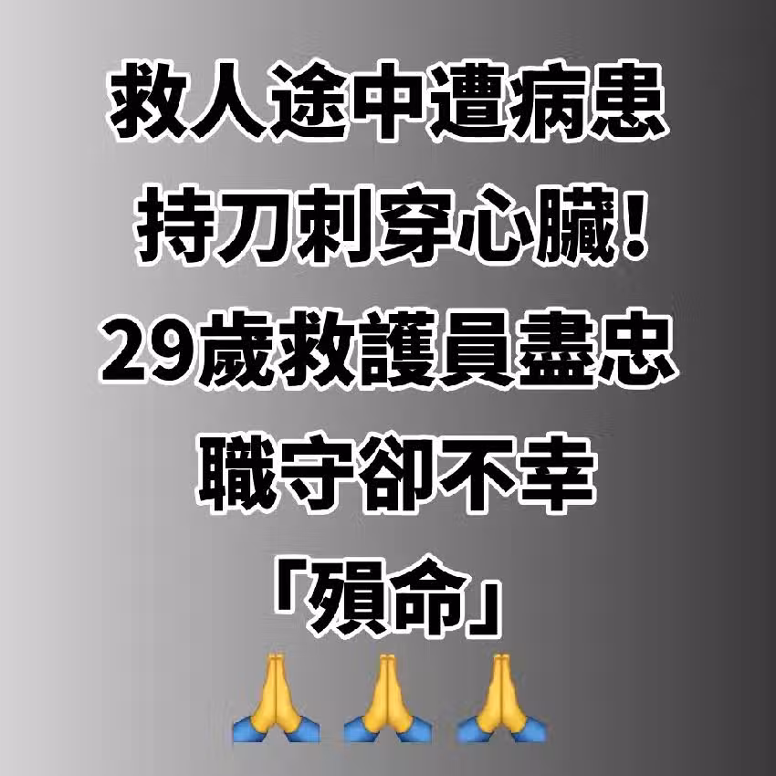 救人途中遭病患持刀刺穿心臟! 29歲救護員盡忠職守「卻不幸殞命」 #RIP