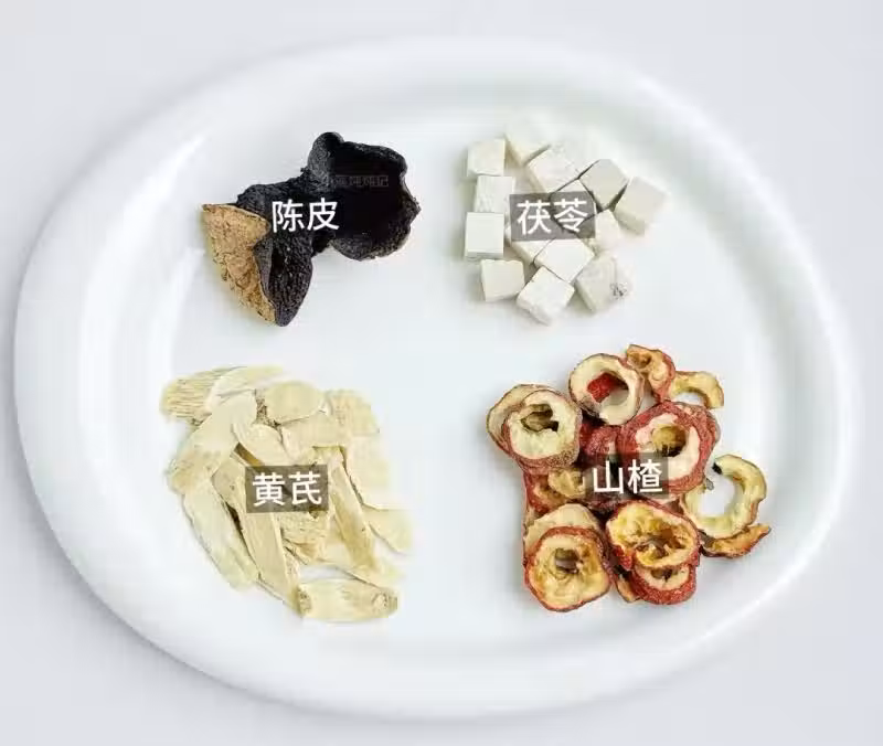 食材:黃芪10g、山楂5g、陳皮1片、茯苓10g 步驟: 1、將黃芪、山楂、陳皮、茯苓清水沖洗一下。 2、將所有食材放養生壺煮20分鐘即可。