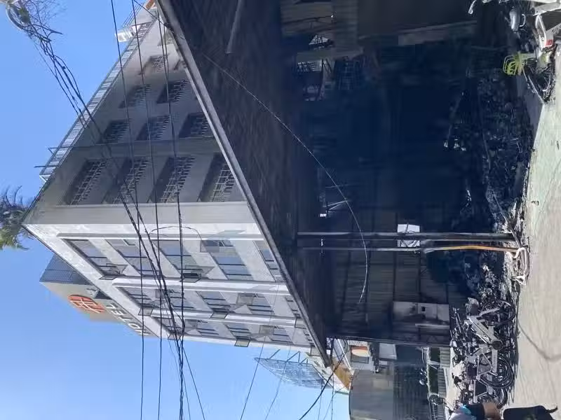 員林市中山路MOOVO自行車檢修區運點倉庫今天凌晨發生大火,還波及一旁的旅館,緊急撤離17名旅館住客。記者林宛諭/攝影