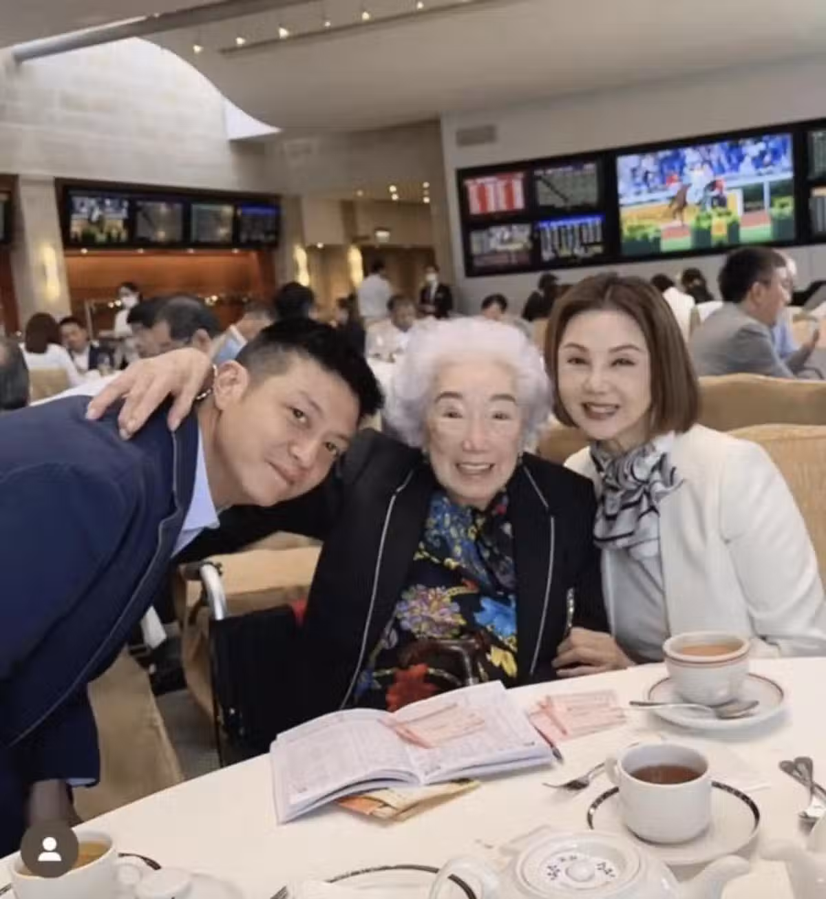 林建岳百歲母親看賽馬,坐輪椅叼煙出鏡,打扮體面滿頭白髮好顯眼
