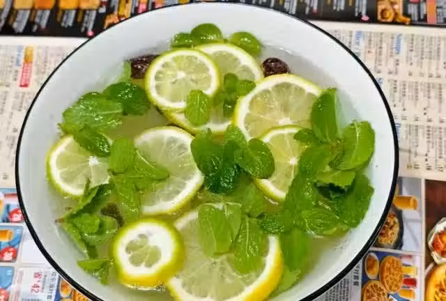 抓5-8片薄荷葉,切2-3片檸檬,一起丟進鍋里加適量水和少許冰糖,煮10-15分鐘即可。