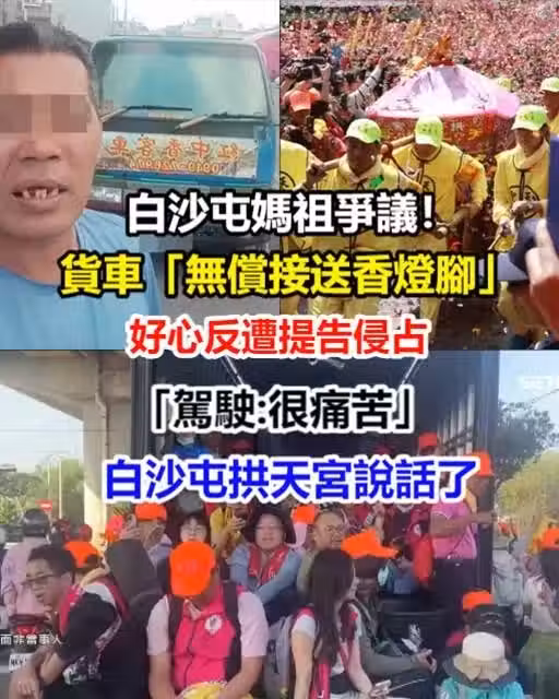 根據《ETtoday新聞雲》報導,白沙屯媽祖進香活動期間,一名熱心貨車駕駛提供免費接送服務,讓體力不支的信眾可以搭車休息。
