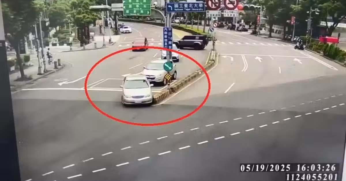 監視器錄下余姓老翁撞擊到分隔島。(圖/翻攝畫面)