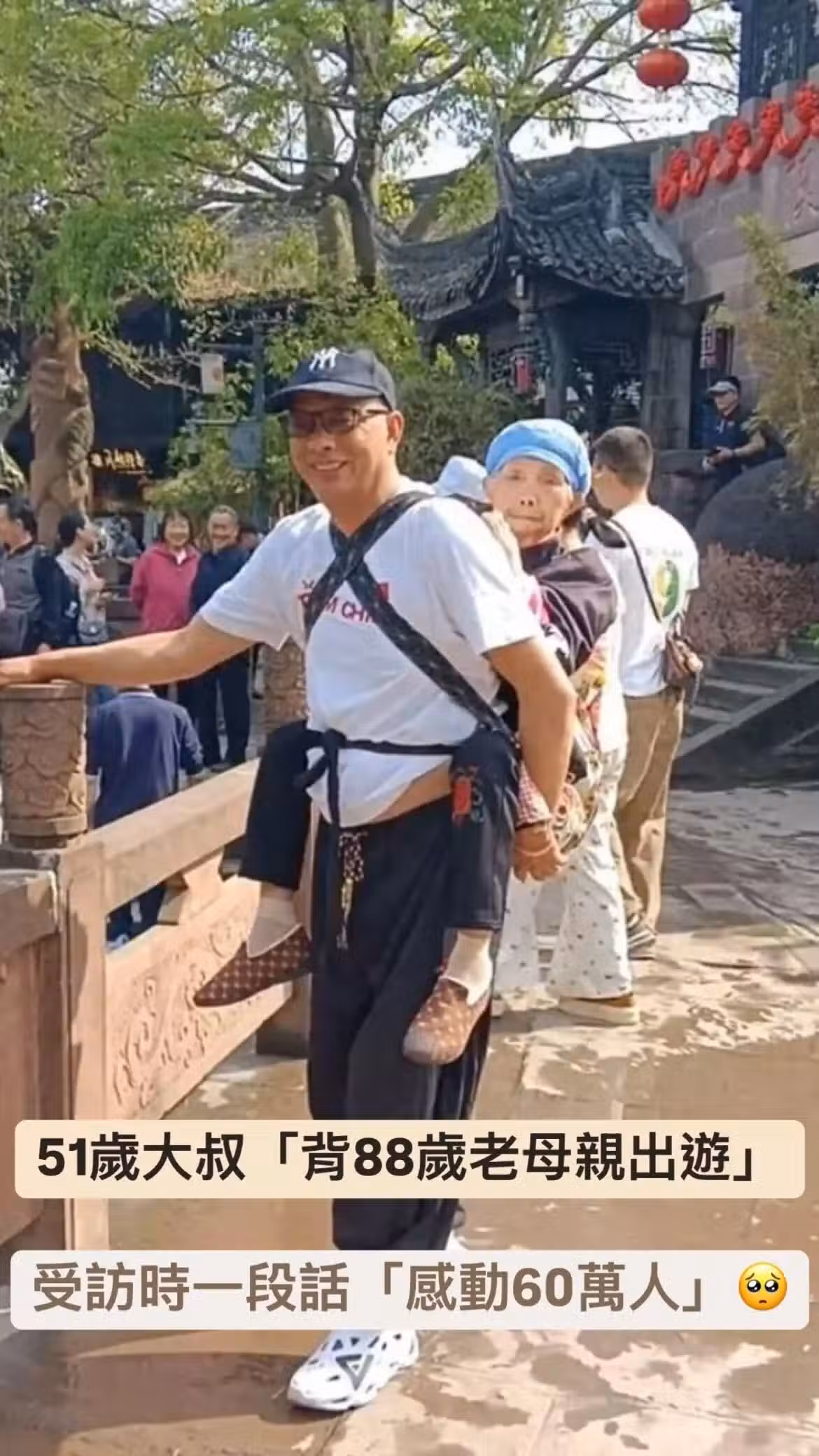 最美的風景!51歲大叔「背88歲老母親出遊」照片曝光 他受訪時「淡淡說了一段話」感動60萬網友
