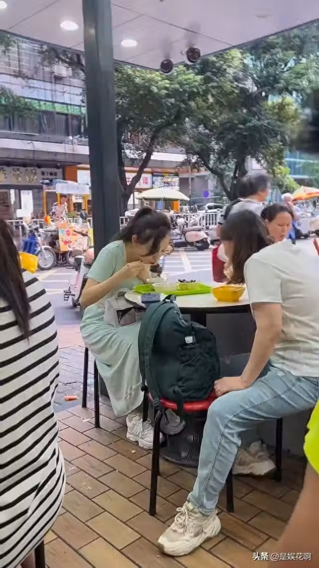 近日,有網友分享了在廣東大排檔偶遇楊思琦的片段,但並沒有認出她是楊思琦,留言寫道:「這個是不是那個明星,好眼熟」。