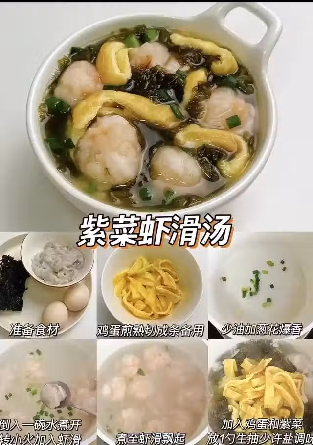 紫菜蝦滑湯:高蛋白、低卡的完美結合!蝦滑里加個蛋清,Q彈程度直接爆表,一口下去超滿足~