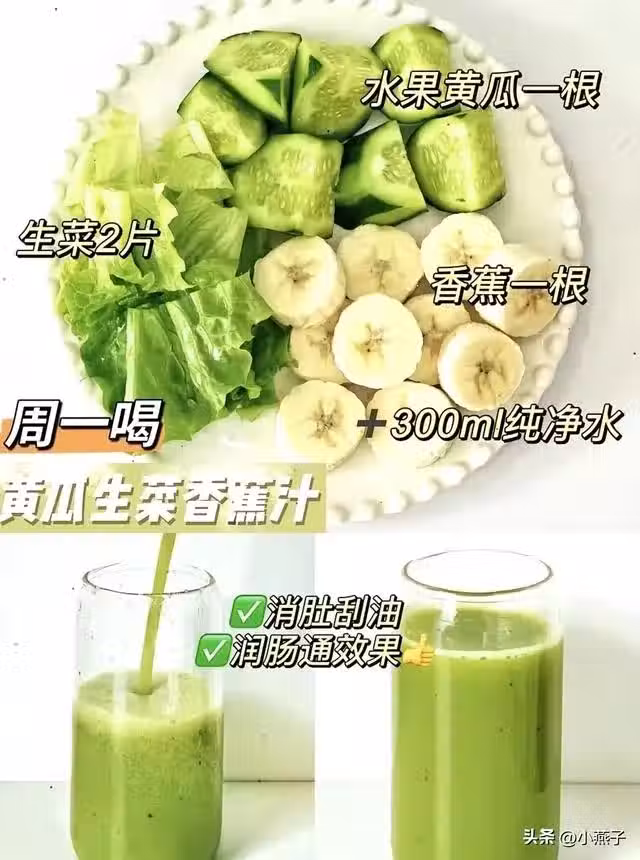 食材:黃瓜1根+香蕉1根+生菜2片+300ml水。