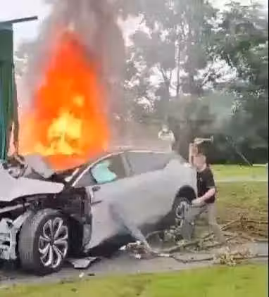 電動車燃爆起火!女駕駛「打不開車門」不幸喪命,身份被挖出「是漂亮大咖」老公知名富豪