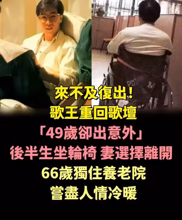 來不及復出!歌王返回歌壇「49歲卻出意外」後半生坐輪椅 妻子選擇離開「66歲獨住養老院」嘗盡人情冷暖