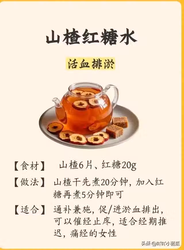 【做法】山楂煮20分鐘→加紅糖煮5分鐘。