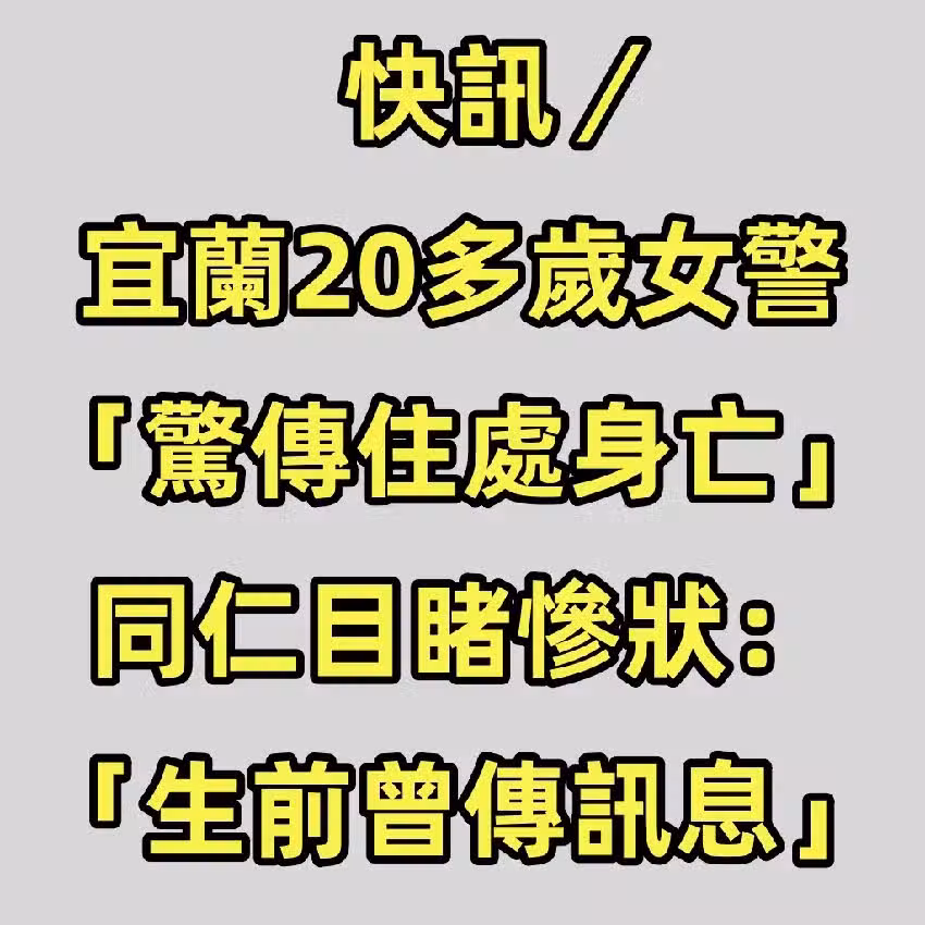 快訊/宜蘭20多歲女警「驚傳住處身亡」!同仁目睹慘狀