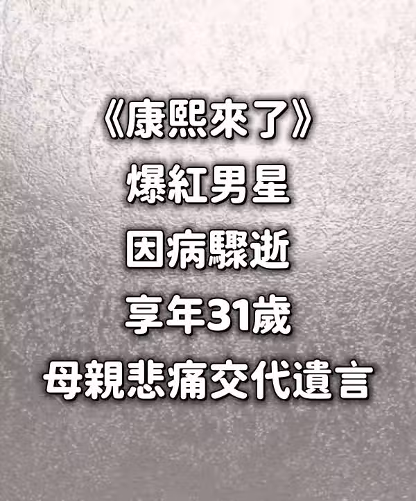 《康熙來了》爆紅男星因病驟逝享年31歲 母親悲痛交代遺言...