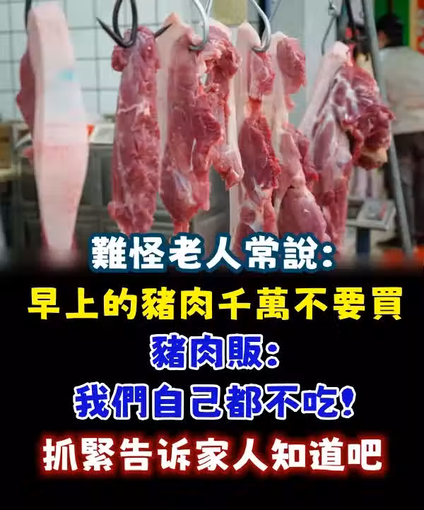 難怪老一輩的常說:早上的豬肉萬萬千萬不要買,豬肉販:我們自己都不吃!趕緊告訴家人知道吧!!!