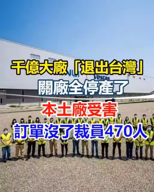 突然大規模裁撤,原來是千億風電巨頭維特斯(Vestas)大廠退出台灣,一起合開的工廠全面停產,金主沒了!