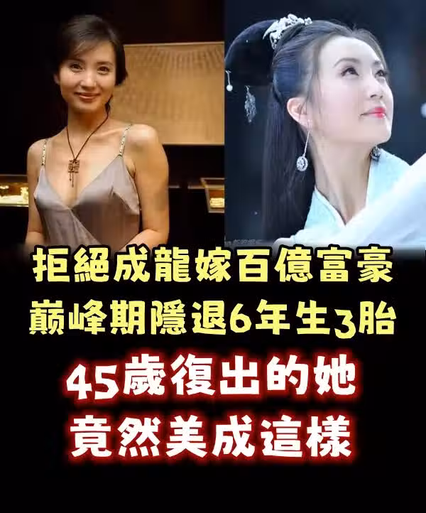 拒絕成龍嫁百億富豪,巔峰期隱退6年生3胎,45歲復出的她竟然美成這樣