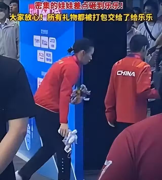 她說武漢是她的福地,說喜歡熱乾麵,還開玩笑自己也是個饞貓,一下子又把人從緊張的賽場拉回到那個愛吃愛笑的小姑娘身上,不過高光時刻過後,也出了點小插曲。她走向觀眾席時,突然被一陣娃娃雨「襲擊」。