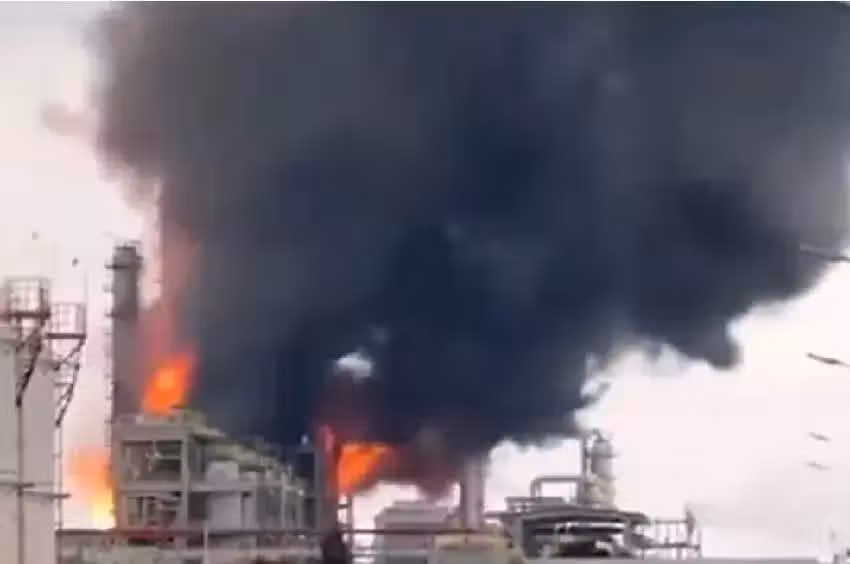 濃煙直衝雲霄,廠區內白色氣體噴射不止,黃色有毒氣體瀰漫整個區域。