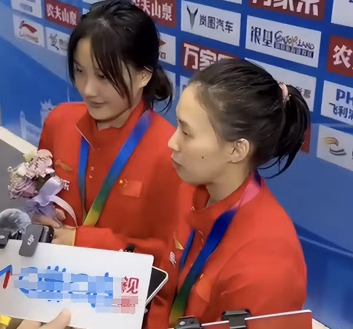 全紅嬋張家齊觀賽,2人可愛十足,陳芋汐奪冠,領獎表情證明一切