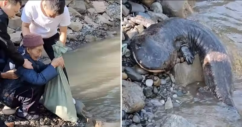 阿嬤90歲大壽最暖決定!放飼養22年「鎮宅寶」娃娃魚回歸溪流,下水瞬間親人淚崩:它在跟阿嬤道別
