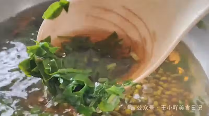 將煮好的車前草煮綠豆盛入碗中,稍稍放涼就可以喝了。這款飲品既有綠豆和冰糖的香甜,又夾帶著車前草的清香,喝起來口感非常特別。在炎熱的夏天,喝上一碗,既能清熱消暑,又能利濕解毒,讓人感覺身心舒暢。