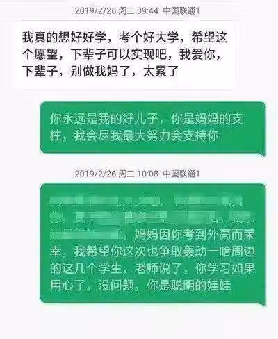 過了幾分鐘,母親又發簡訊說: