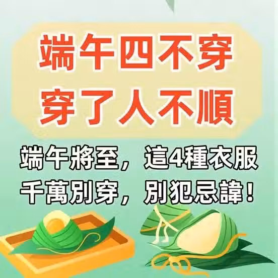 傳統文化中,端午節有許多關於穿衣的禁忌,有四種衣服被認為是不能穿的。
