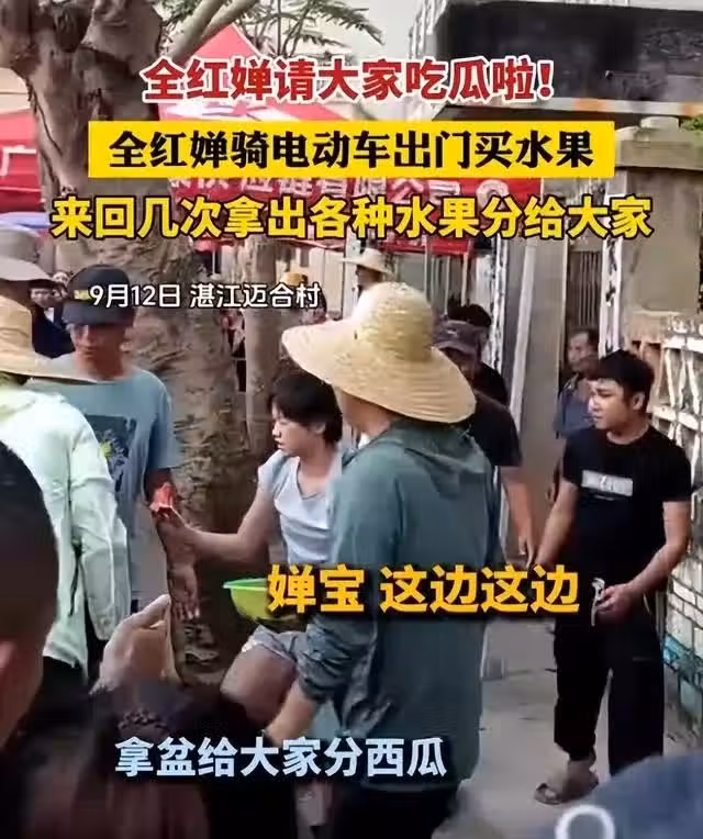 樸實善良的全爸!親自給施工隊送昂貴水果,難怪全紅嬋這麼優秀