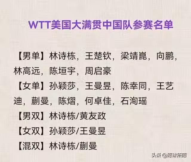 5月29日,就在世乒賽後,國乒公布了2025年美國大滿貫的首批參賽名單,其中男單方面由林詩棟、王楚欽、梁靖崑領銜,向鵬、林高遠、陳垣宇、周啟豪跟隊,女單方面由孫穎莎王曼昱領銜,陳幸同、王藝迪、蒯曼、陳熠、何卓佳、石洵瑤緊隨。在男雙女雙混雙方面也有微調。