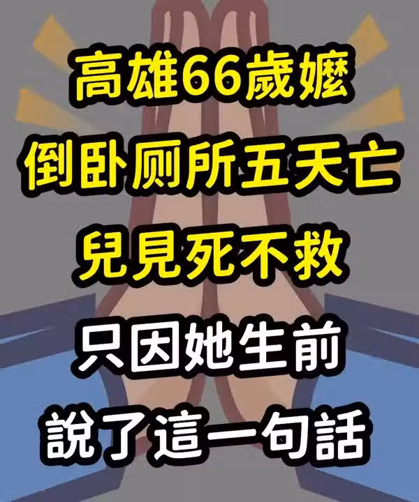 高雄66歲嬤「倒臥廁所五天亡」兒見.死.不.救!只因她生前說了一句話