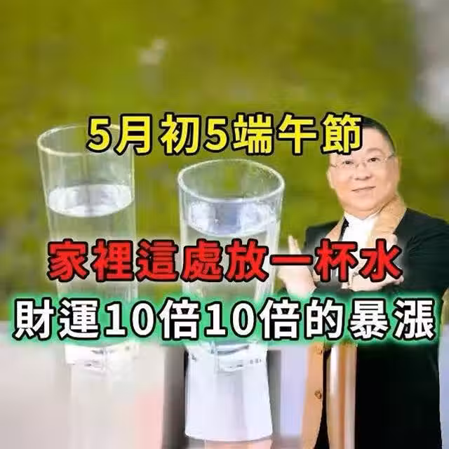 風水大師忍不住泄露:5月初5端午節,家裡這處放一杯水,財運10倍10倍的暴漲!實在太靈驗