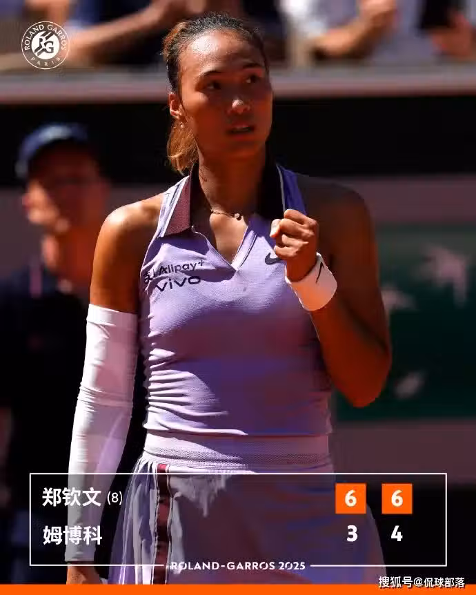 5月30日晚,法網女單第3輪一場比賽,鄭欽文以6-3、6-4戰勝18歲小將姆博科,不丟一盤且三連勝挺進十六強,追平職業生涯在這項大滿貫的最佳戰績。此外,鄭欽文還收穫240個積分,以及人民幣216萬元獎金。