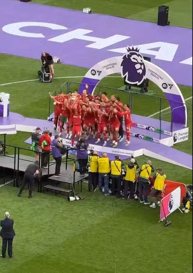 當天,利物浦在英超收官戰中主場1比1戰平水晶宮,雖然沒贏球,但絲毫不影響球迷的狂熱心情。畢竟,利物浦本賽季的表現有目共睹,奪冠的喜悅早就溢滿了整座城市。