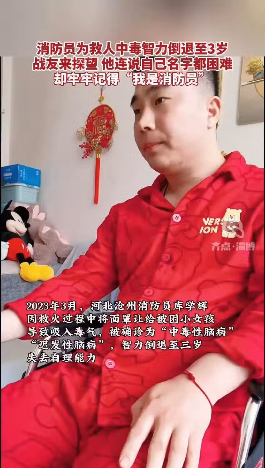 因為實在沒有別的方式,醫師只能勸庫姓副隊長的老婆「慢慢教吧」、「一點點長大吧」,他們也紀錄復健過程拍成影片,庫姓副隊長後來到醫院經過數個月的治療,已經可以靠自己站起來,也可以做簡短的問答,不少網友也替他加油打氣,希望這樣的英雄可以順利康復。