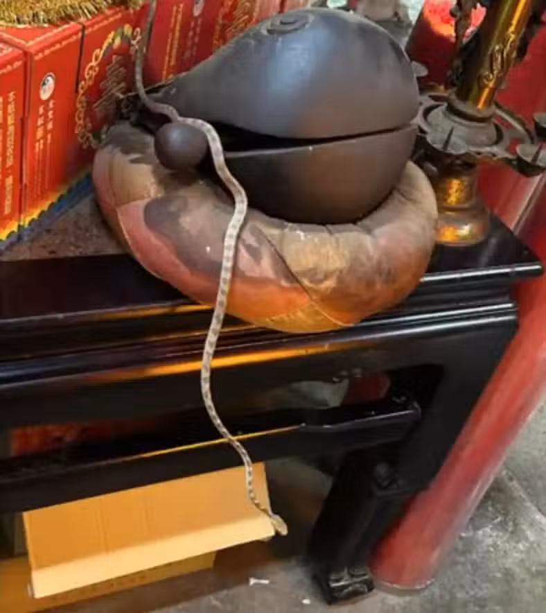 每年端午必到訪!南投天受宮「帝爺公蛇」準時報到 香客驚喜喊:「連續45年現身!」