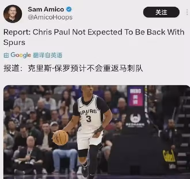 美記透露:由於擁擠的後場,完全自由球員保羅預計不會回歸馬刺。