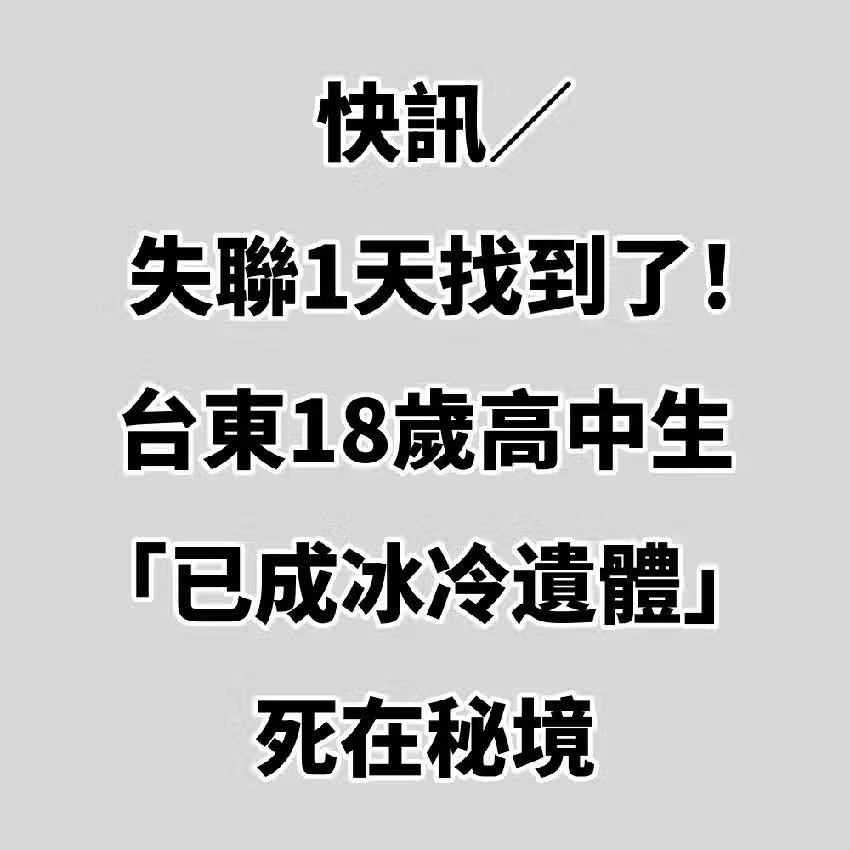 快訊/失聯1天找到了!台東18歲高中生「已成冰冷遺體」死在秘境