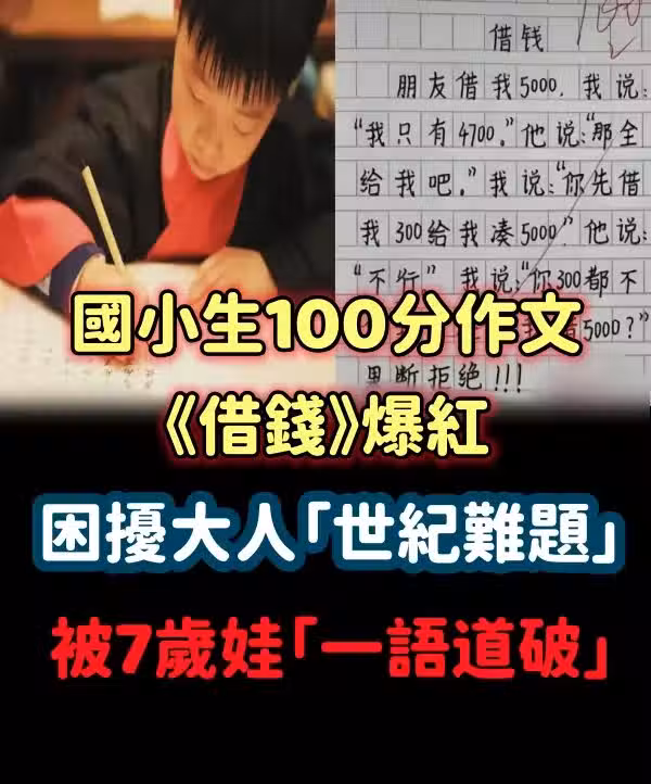 小學生100分作文《借錢》爆紅:困擾大人的「世紀難題」,被7歲娃「一語道破」!