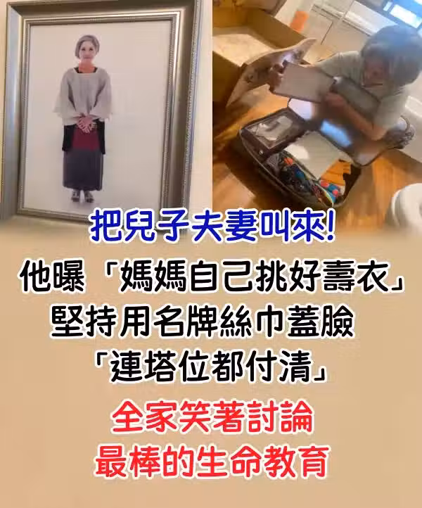 把兒子夫妻叫來!他曝「媽媽自己挑好壽衣」堅持用名牌絲巾蓋臉 「連塔位都付清」全家笑著討論:最棒的生命教育