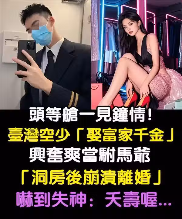 頭等艙一見鍾情!台灣空少「娶富家千金」爽當駙馬爺「洞房後崩潰離婚」嚇到失神:夭壽喔