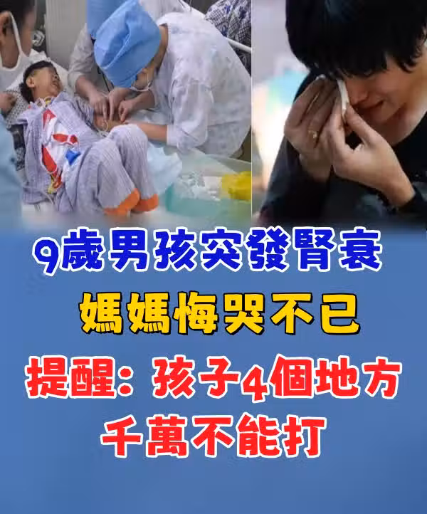 9歲男孩突發腎衰,媽媽悔哭不已,提醒:孩子4個地方千萬不能打