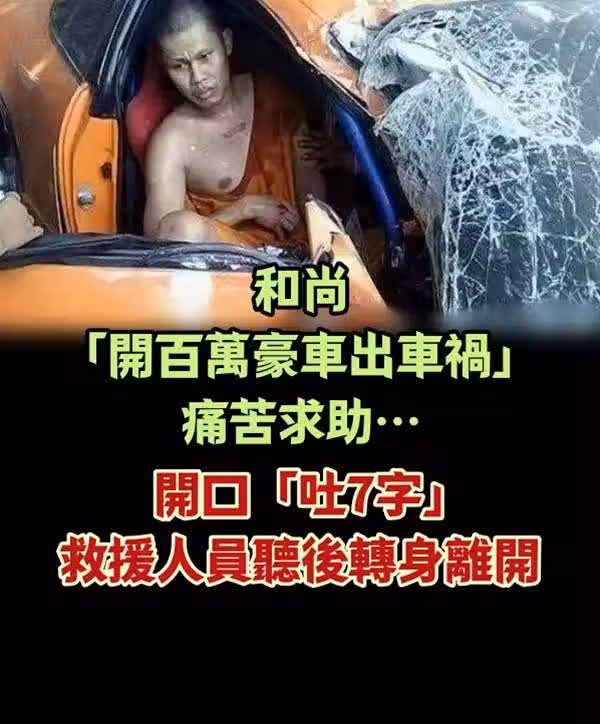 和尚「開百萬豪車出交通事故」痛苦求助…開口「吐7字」救援人員聽後轉身離開!