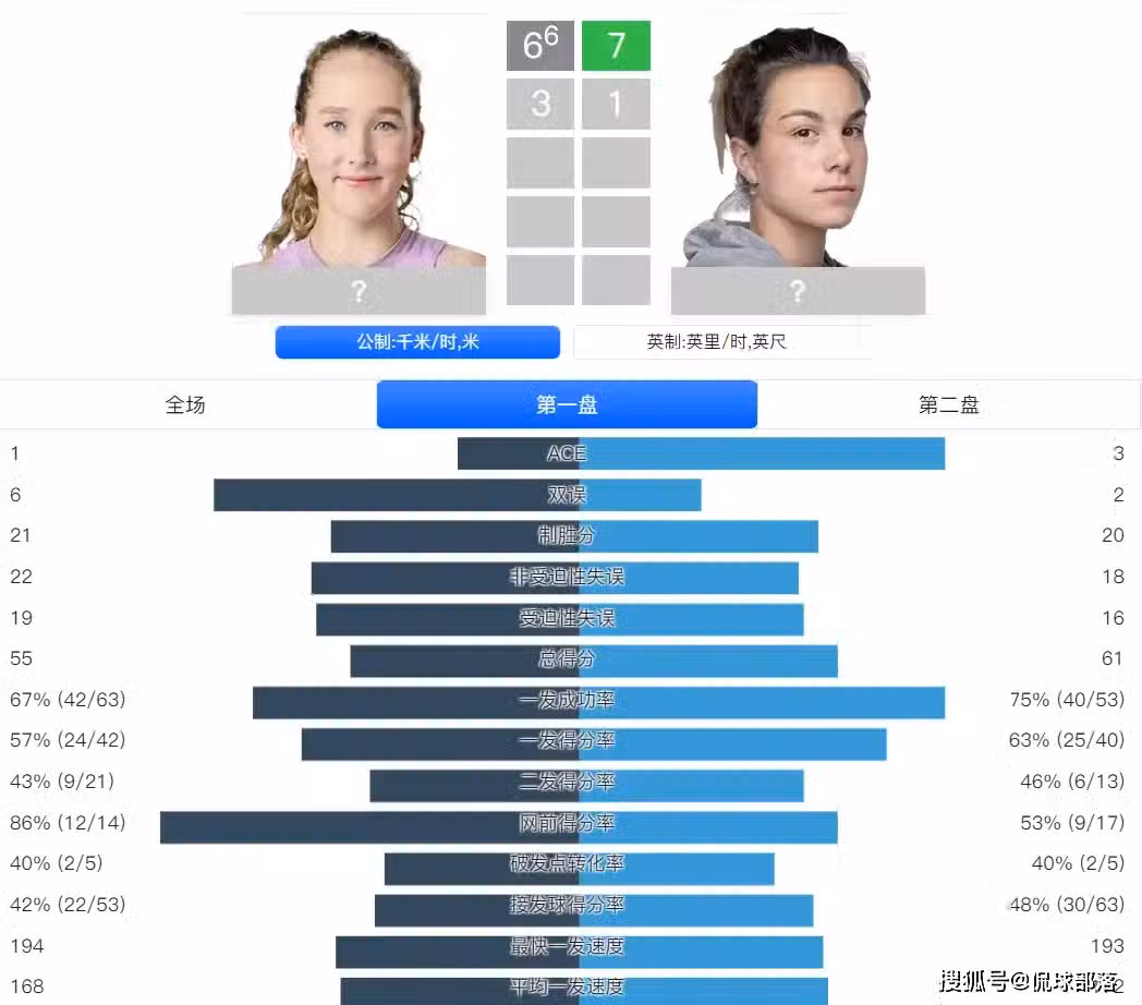 數據統計,米拉-安德烈娃首盤出現了6個雙誤,還有22次非受迫性失誤,同時一發得分率57%、二發得分率43%,多項數據均是不如布瓦松,後者的一發得分率63%、二發得分率46%。