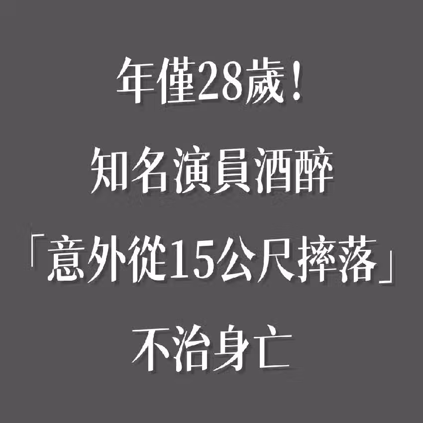 年僅28歲! 知名演員酒醉「意外從15米摔落」不治身亡