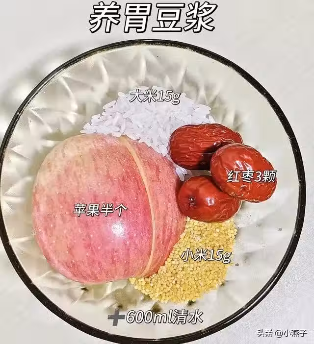食材:蘋果半個 + 小米20g + 山藥15g + 紅棗3顆!