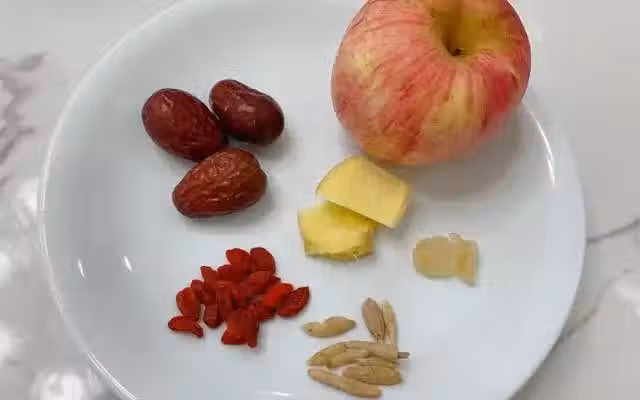 所需食材:蘋果,麥冬,紅棗,冰糖,生薑,枸杞;